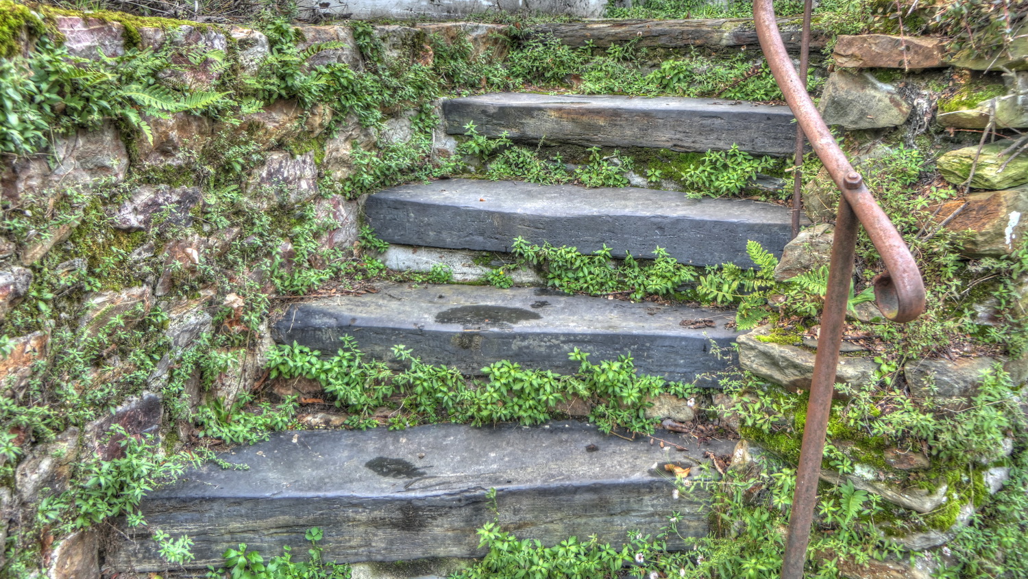 Au n° 6 de la rue de Calais, escalier constitué de dalles de schiste. Ces grosses dalles de schiste bleu ne proviennent pas de la proche région, où le schiste est plus fragmenté et de couleur tire plutôt vers le gris, le jaune ou même l’orangé si de l’oxyde de fer le teinte. Sans doute viennent-elles de carrières du nord de la Loire-Atlantique ou du sud de l’Ille-et-Vilaine où le schiste est adapté à cet usage, faire des palis ou des auges. Il est assez tendre et on peut le scier. Mais les marches s’usent aussi au fil des passages, comme ici.