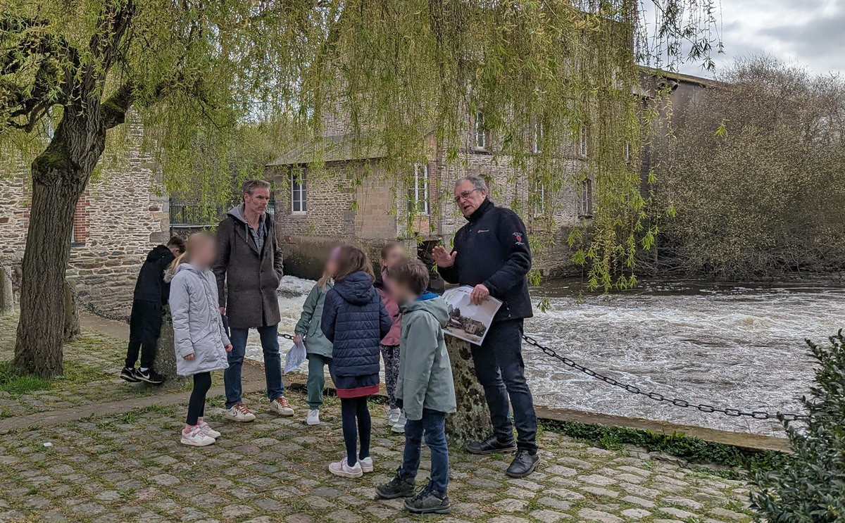 Devant les moulins d’Acigné. Savez-vous que c’est le dernier moulin en activité sur le cours de la Vilaine ?