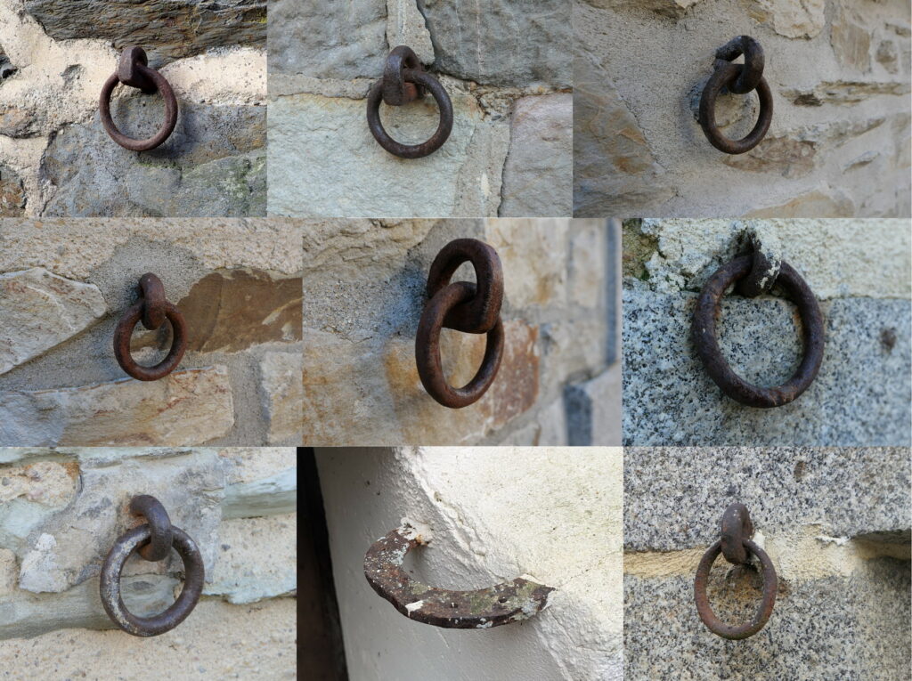 On passe à côté sans les remarquer. Et pourtant un certain nombre d’anneaux métalliques qui servaient à attacher les chevaux aux murs dans les rues au temps de la traction hippomobile, les derniers dans les années 1960, sont toujours là.